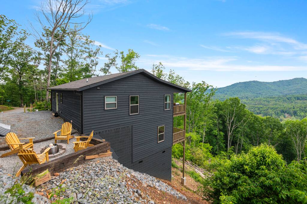 EverLight Mountain Escape - Stunning Smoky Mountains Retreat Highlights: Bedrooms & Bathrooms: 1 King Bed 1 Queen Bed 2 Full Bathrooms *StarLink Wifi *Free Coffee and Tea INCLUDING Decaf Breathtaking Views: Enjoy a stunning 270-degree view of the Appalachian / Smokey Mountains and the beautiful surrounding valleys. Outdoor Amenities: Cozy outdoor fire pit with an amazing view, perfect for making s’mores. Lovely deck seating for relaxing and soaking in the scenery. EV 220 Plug available for guest use (guest to bring their own charging cables) BBQ grill (propane) for outdoor cooking and dining. 10 Miles to Harrah's Cherokee Casino Resort 7 Miles to Brasstown 18 Miles Brasstown Valley Resort Please Note: Only the upstairs of the home and upper deck are available for guest use. The lower level is unfinished and locked for safety. The home is not child-proof (steep lot), so please be aware if you choose to bring young children, please do so at your own risk and ensure they are closely supervised at all times. PETS/ANIMALS - Please NO PETS or ANIMALS. We have severe allergies in our family. $500 FEE WILL BE CHARGED IF ANY PETS OR ANIMALS ARE BROUGHT! Maximum Occupancy is 4 - additional guests must be approved by the host first. Experience the beauty and tranquility of the Appalachian / Smokey Mountains at EverLight Mountain Escape. Book your stay today!