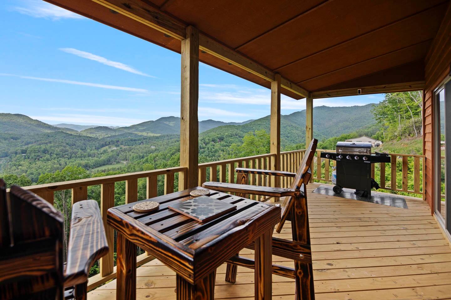 EverLight Mountain Escape - Stunning Smoky Mountains Retreat Highlights: Bedrooms & Bathrooms: 1 King Bed 1 Queen Bed 2 Full Bathrooms *StarLink Wifi *Free Coffee and Tea INCLUDING Decaf Breathtaking Views: Enjoy a stunning 270-degree view of the Appalachian / Smokey Mountains and the beautiful surrounding valleys. Outdoor Amenities: Cozy outdoor fire pit with an amazing view, perfect for making s’mores. (Guests provide firewood) Lovely deck seating for relaxing and soaking in the scenery. EV 220 Plug available for guest use (guest to bring their own charging cables) BBQ grill (propane) for outdoor cooking and dining. 10 Miles to Harrah's Cherokee Casino Resort 7 Miles to Brasstown 18 Miles Brasstown Valley Resort Please Note: Only the upstairs of the home and the upper deck are available for guest use. The lower level is occasionally occupied by the owner and not available for guest use. The home is not child-proof (due to the steep lot), so please be aware that if you choose to bring young children, you do so at your own risk and must ensure they are closely supervised at all times. PETS/ANIMALS - Please NO PETS or ANIMALS. We have severe allergies in our family. $500 FEE WILL BE CHARGED IF ANY PETS OR ANIMALS ARE BROUGHT! Maximum Occupancy is 4 - additional guests must be approved by the host first. Experience the beauty and tranquility of the Appalachian / Smoky Mountains at EverLight Mountain Escape. Book your stay today!